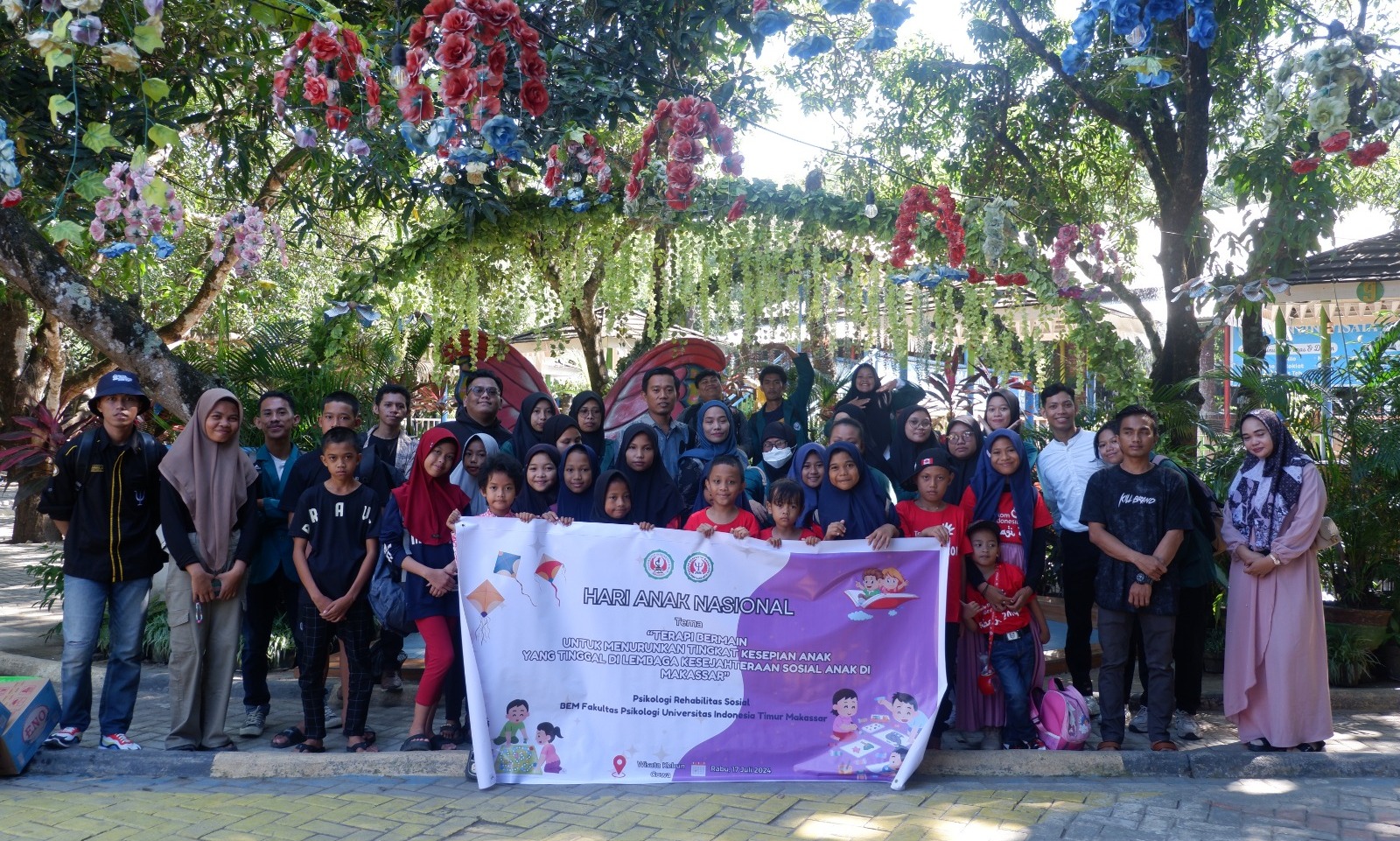 MAKASSAR,FILALIN.COM,- Memperingati Hari Anak Nasional, Dosen dan Mahasiswa semester VI bekerjasama dengan BEM Fakultas Psikologi Universitas Indonesia Timur Makassar melakukan kolaborasi memberikan Terapi Bermain di Wisata Kebun Gowa kepada anak-anak yang tinggal di Lembaga Kesejahteraan Sosial Anak yang berada di Kota Makassar. Aktifitas tersebut merupakan pengimplementasian Mata Kuliah Psikologi Rehabiltasi Sosial yang merupakan mata kuliah wajib bagi mahasiswa Fakultas Psikologi UIT, Rabu 24 Juli 2024.