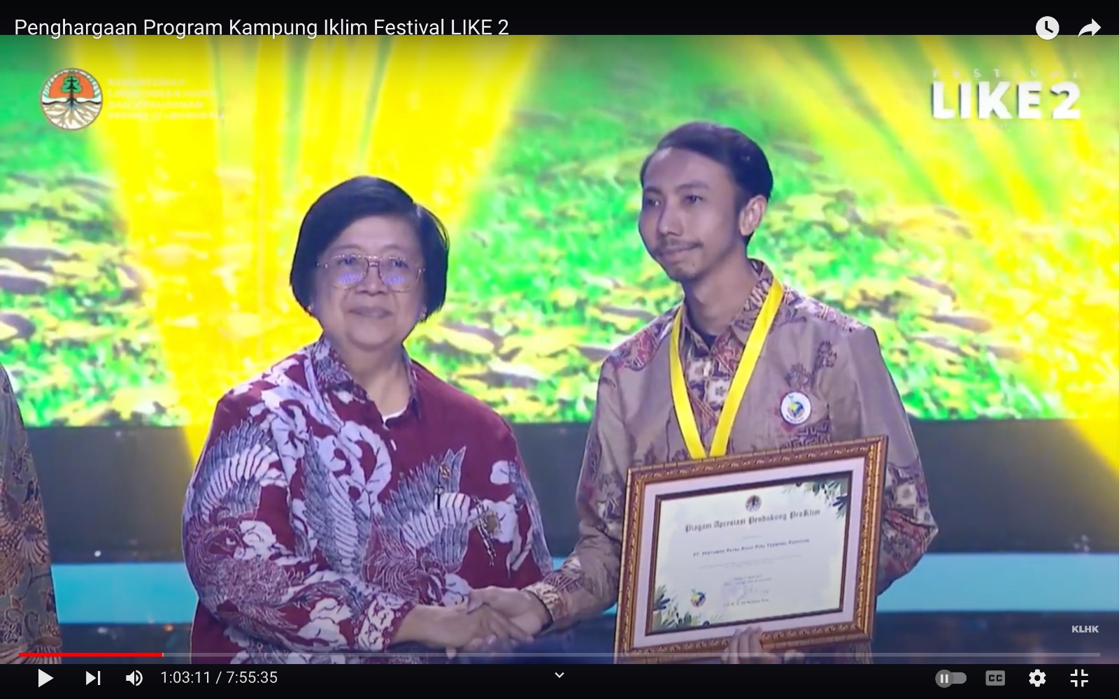 Penghargaan ini diberikan sebagai bentuk apresiasi atas kontribusi perusahaan dalam mendukung upaya mitigasi dan adaptasi perubahan iklim ditingkat lokal dalam Program Kampung Iklim (ProKlim).