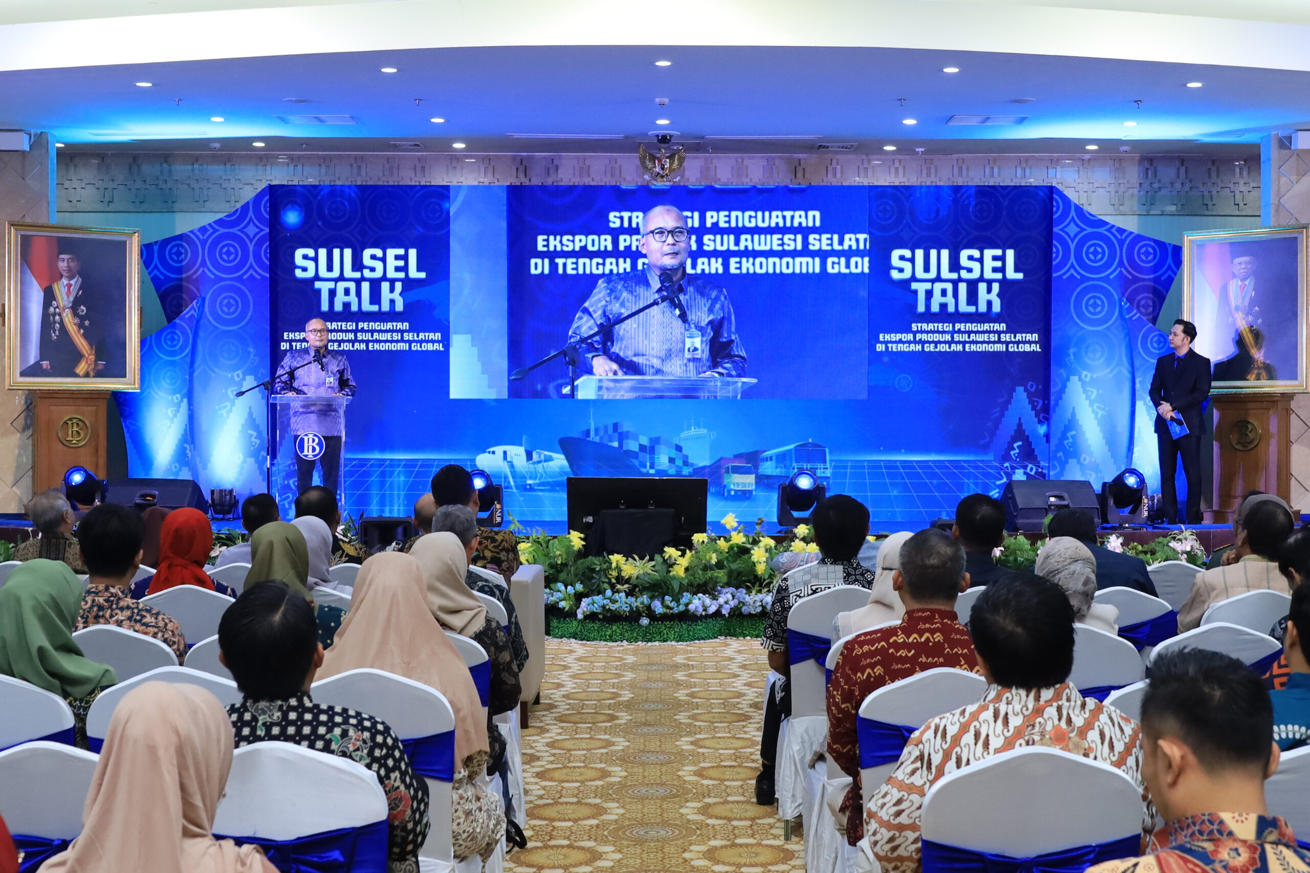 Melihat fenomena tersebut, BI Sulsel berinisiatif menyelenggarakan seminar Sulsel Talk yang diselenggarakan pada 15 Agustus 2024 bertempat di Kantor Perwakilan BI Provinsi Sulawesi Selatan dengan mengangkat tema “Strategi Penguatan Ekspor Produk Sulawesi Selatan di Tengah Gejolak Ekonomi Global”. Seminar ini menghadirkan :tiga orang narasumber yaitu: 1.) Bapak Rizki Ernadi Wimanda, Kepala Perwakilan BI Provinsi Sulsel, dengan paparan mengenai perkembangan terkini ekonomi global, nasional, dan Sulawesi Selatan; 2.) Josua Pardede, Chief Economist PT. Bank Permata Tbk, dengan paparan mengenai Strategi Penguatan Ekspor Sulawesi di Tengah Gejolak Ekonomi Global; 3.) Arief R. Pabe]ngi, Ketua Umum Gabungan Perusahaan Ekspor Indonesia (GPEI) DPD Sulselbar.