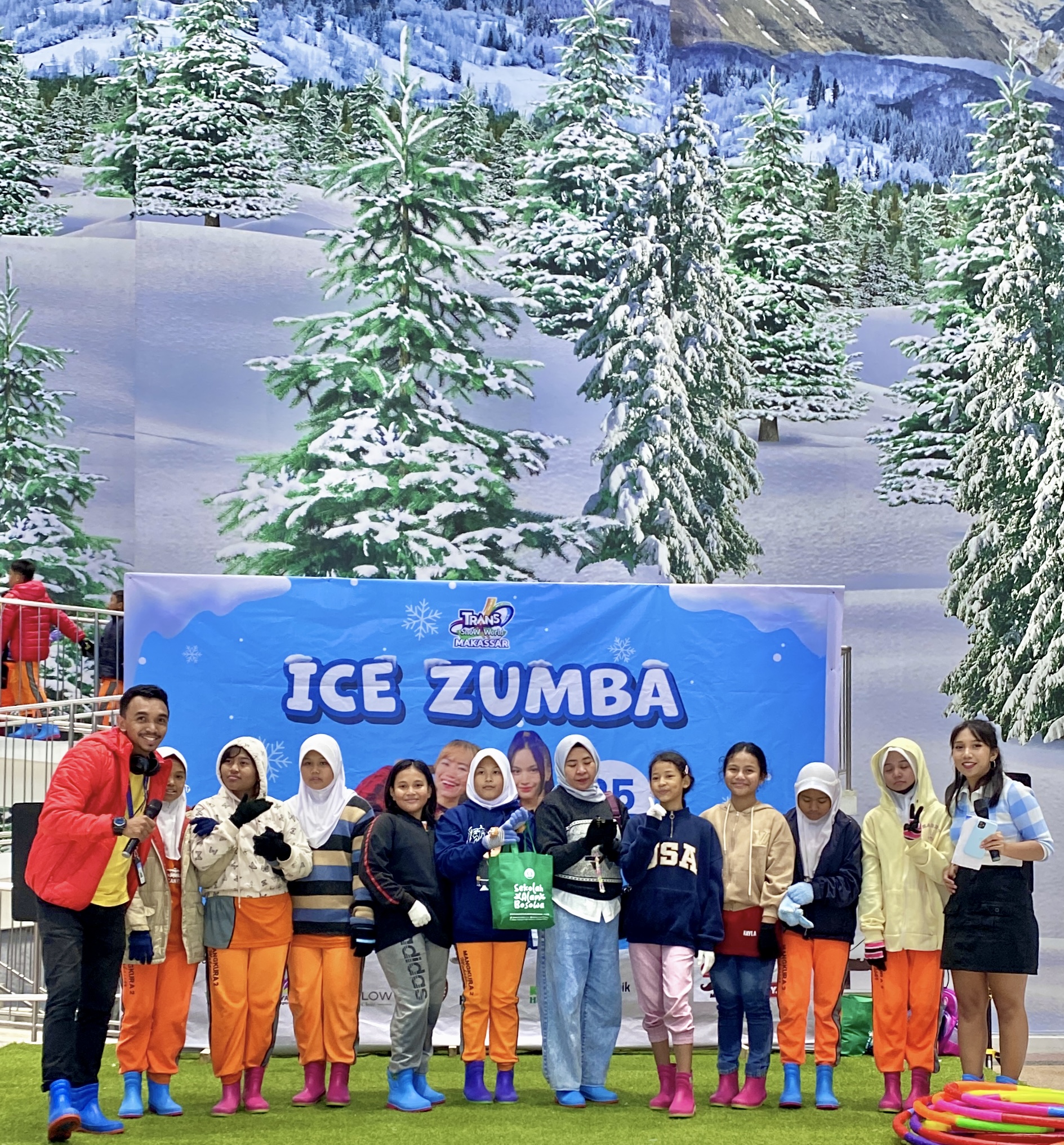 ans Snow World Makassar dengan bangga mengumumkan kesuksesan event Ice Zumba yang diselenggarakan pada tanggal 25 September 2024. Sebagai event olahraga kedua yang mengusung konsep salju pertama di Makassar, acara ini dimeriahkan oleh instruktur Zumba profesional, Zin Elma dan Zin Mian, serta disponsori oleh berbagai brand ternama seperti ASTON Makassar Hotel & Convention Center, W Three Style Hotel Makassar, MS Glow Aesthetic Clinic Makassar yang memberikan pemeriksaan kesehatan kulit gratis, Klinik Cahaya Saga Makassar dengan pemeriksaan kesehatan gratis, Mom N Jo, HIGAR, Komix Herbal, Sakatonik Activ, Mr. Bread Makassar, dan SoyJoy.