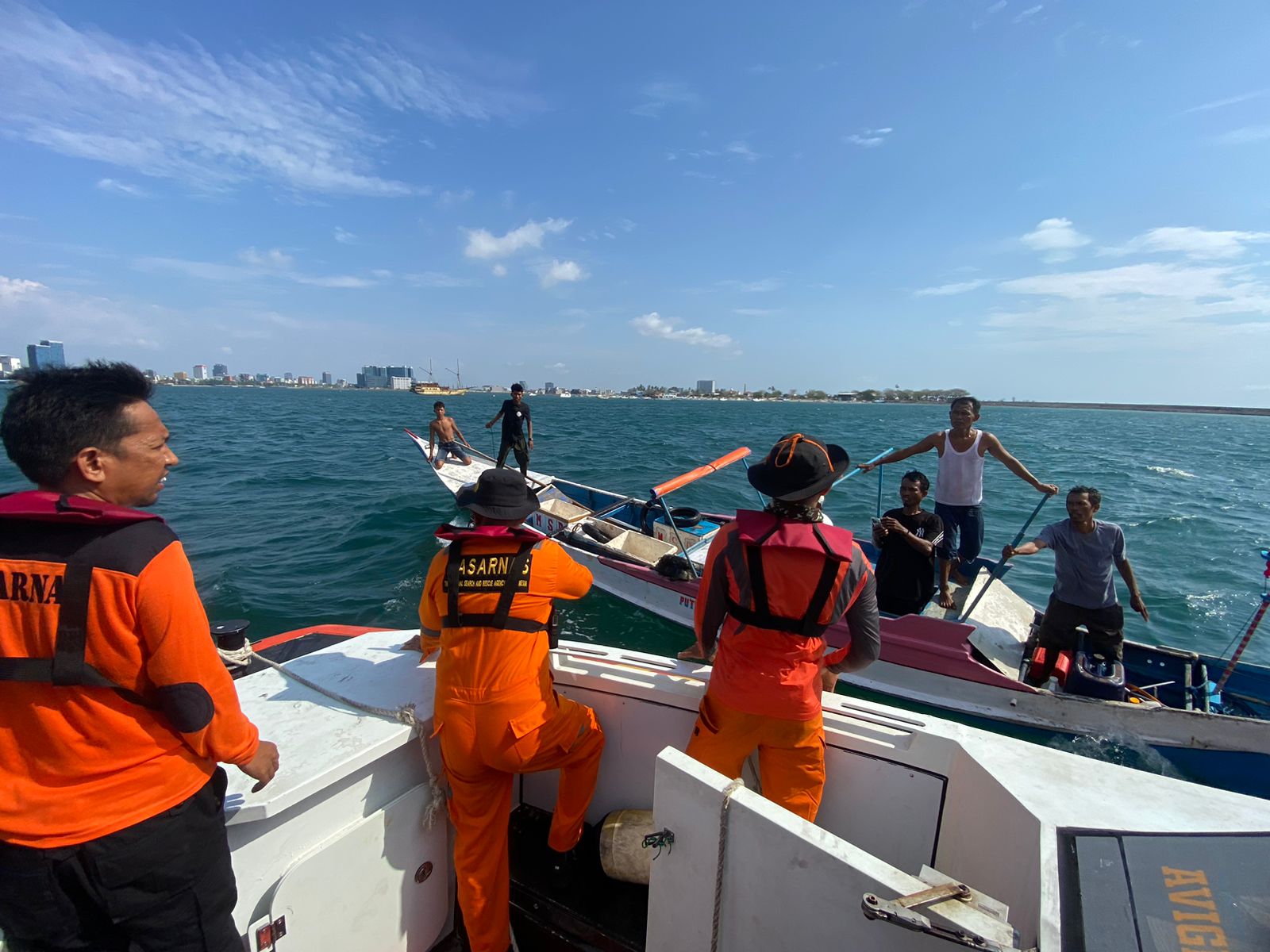 Tim rescue basarnas makassar bersama dengan tim sar gabungan segera melakukan pencarian menggunakan Rigid Bouyancy Boat (RBB) di lokasi kecelakaan kapal.