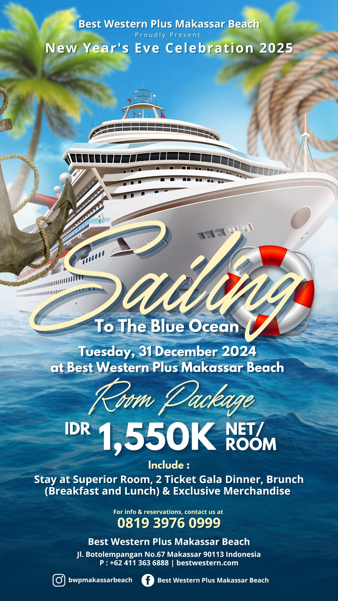Mulai petualanganmu di malam tahun baru dengan vibes yang menawan dan konsep berbeda dari tahun sebelumnya di Best Western Plus Makassar Beach Hotel Hadir dengan tema “Sailing to the To the Blue Ocean”. Menghadirkan rangkaian acara menarik yang ditunggu tungu diantaranya Gala dinner. Dengan suguhan lebih dari 50 menu terbaik Chef Handal kami mulai dari Aneka Seafood, ragam menu Nusantara, hidangan Western yang menggugah selera, hingga kelezatan Chinese food. Yang pastinya bakal lebih seru lagi dengan diringi perpaduan sempurna Accoustic & Band Live Performance yang energik, keseruan games menarik, dan berbagai doorprize yang tentunya sudah kami siapkan. Dijamin membuat malam perayaan Tahun baru Anda jauh lebih berkesan dan tak terlupakan.