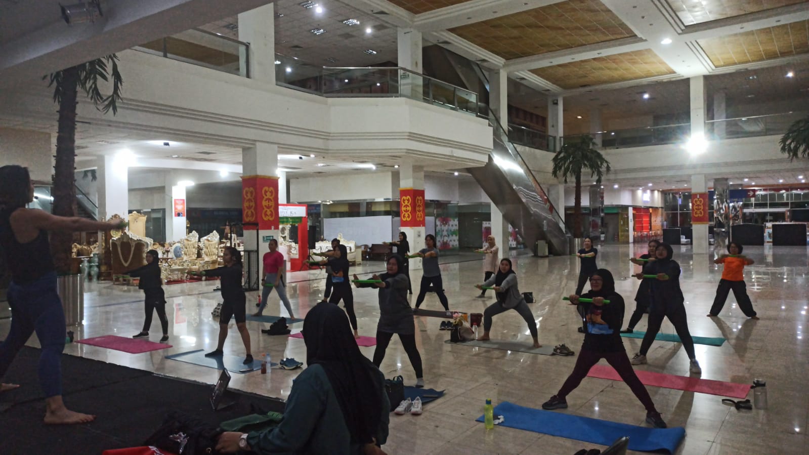 MAKASSAR,FILALIN.COM, – PT GMTD Tbk mengadakan olahraga poundfit bersama karyawan di Main Hall Mall GTC. Kegiatan ini bertujuan untuk untuk membangun work-life balance bagi karyawan. Olahraga poundfit ini merupakan olahraga yang seru untuk dilakukan, karena menggabungkan gerakan yoga, pilates dan seni drum yang menggunakan dua tongkat sebagai alat bantunya.