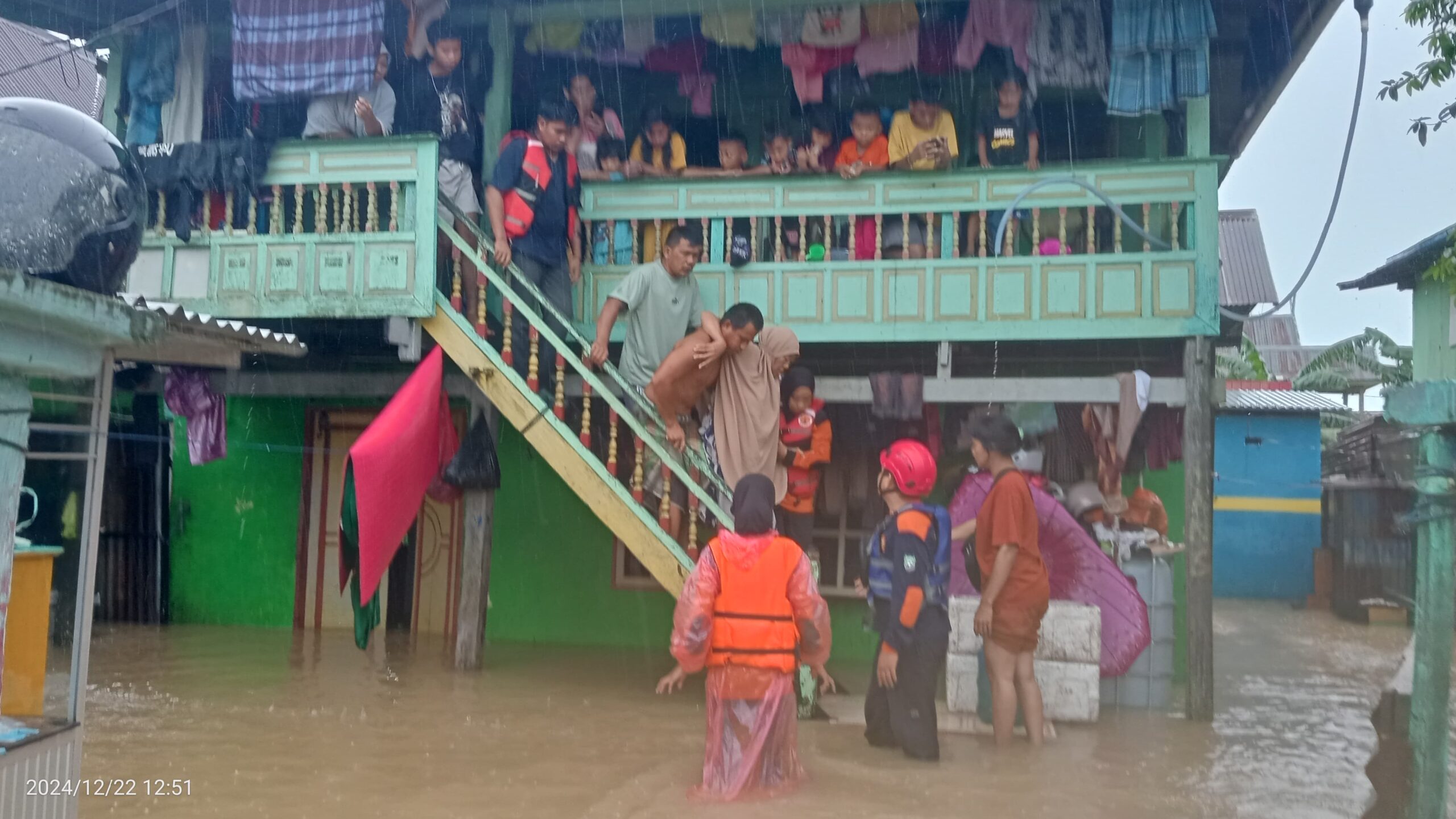Tim 1 Kota Makassar melakukan pemantauan di Kec Biring kanaiya Kota Makassar dan saat ini ketinggian air 50 cm – 1 meter dan sudah sudah mulai surut
