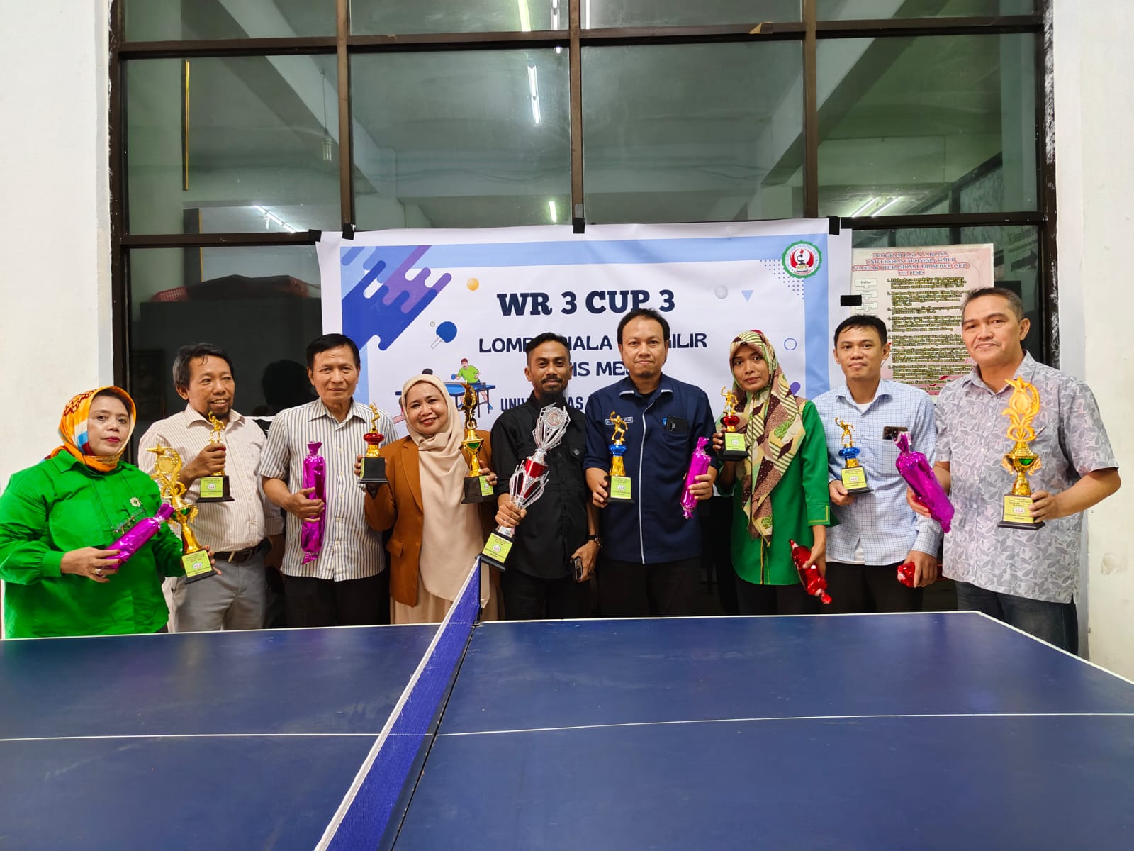 Kategori Tenis Meja Putri diraih Juara 1. Dr.Apt. Ajeng Kurniati Roddu, S.Si, M.Kes, Juara 2. Rusliana, SS, M.Hum, Juara 3. Aisyah, STP, M.Hum.