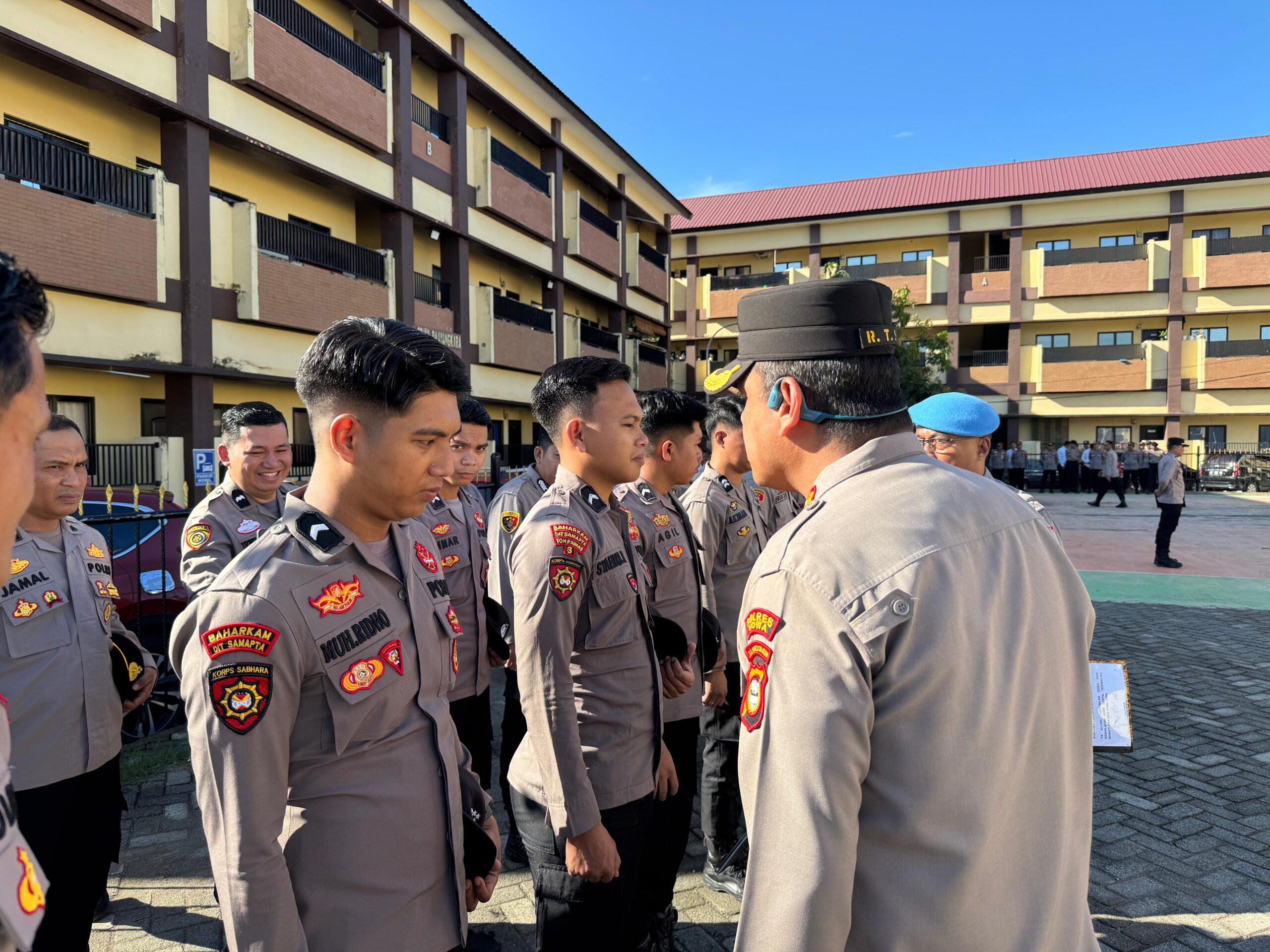 Dalam apel tersebut, Kapolres melakukan inspeksi mendadak (sidak) terhadap sikap tampang personel guna memastikan kedisiplinan dan kerapihan anggota.