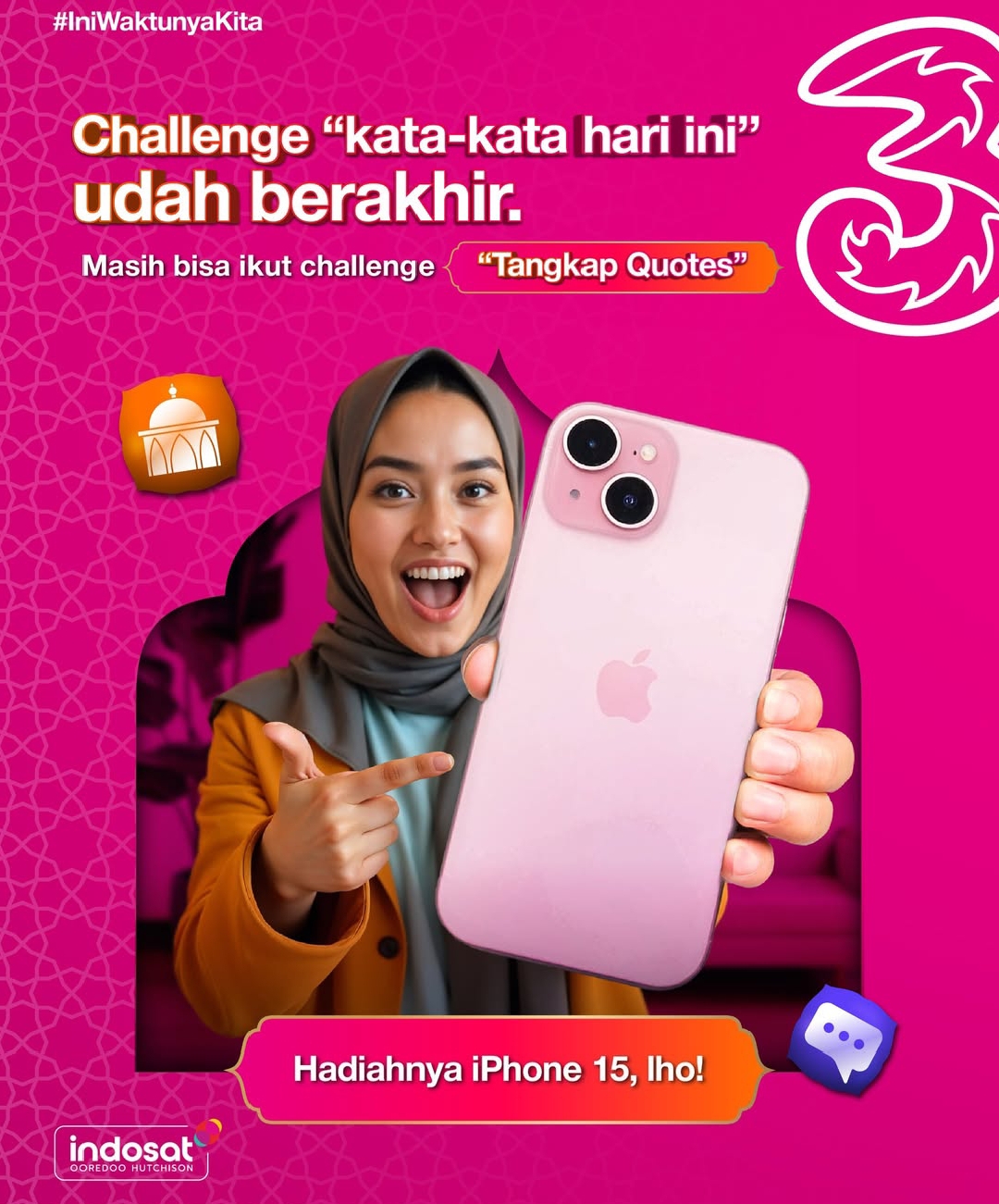 MAKASSAR,FILALIN.COM, — Indosat Ooredoo Hutchison kembali menggelar kompetisi menarik bagi pelanggannya dengan hadiah utama iPhone 15. Setelah sukses dengan challenge “Kata-kata Hari Ini”, kini peserta dapat mengikuti tantangan baru bertajuk “Tangkap Quotes”. Kampanye ini bertujuan untuk meningkatkan interaksi pelanggan dengan konten inspiratif dan positif. Dalam kompetisi ini, peserta diminta mengumpulkan kutipan menarik yang tersedia di platform Indosat. Pemenang akan dipilih berdasarkan kreativitas dan keaktifan dalam menyelesaikan tantangan.