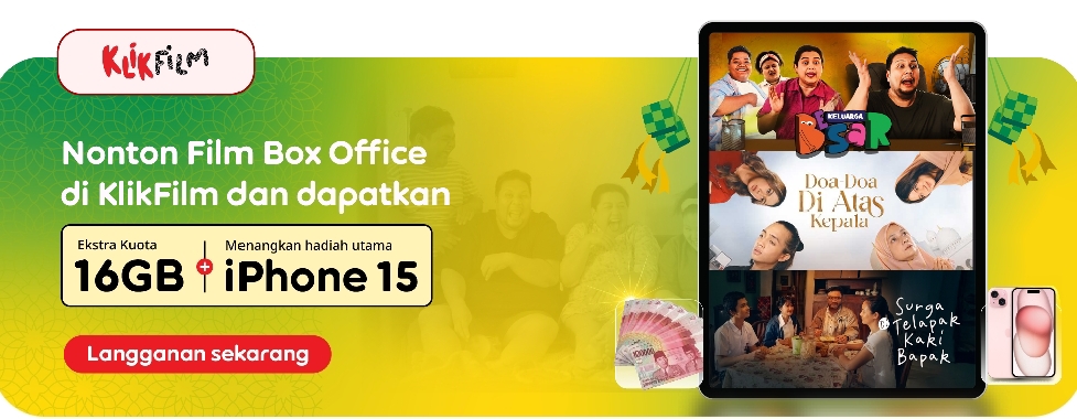 JAKARTA,FILALIN.COM,– KlikFilm menggandeng IM3 dalam promo spesial bagi para pecinta film. Pelanggan IM3 yang berlangganan KlikFilm akan mendapatkan ekstra kuota 16GB dan kesempatan memenangkan iPhone 15. Promo ini memberikan akses ke berbagai film box office populer, seperti Keluarga Besar, Doa-Doa di Atas Kepala, dan Surga di Telapak Kaki Bapak. Dengan penawaran ini, KlikFilm berharap semakin banyak pengguna menikmati tontonan berkualitas secara legal.
