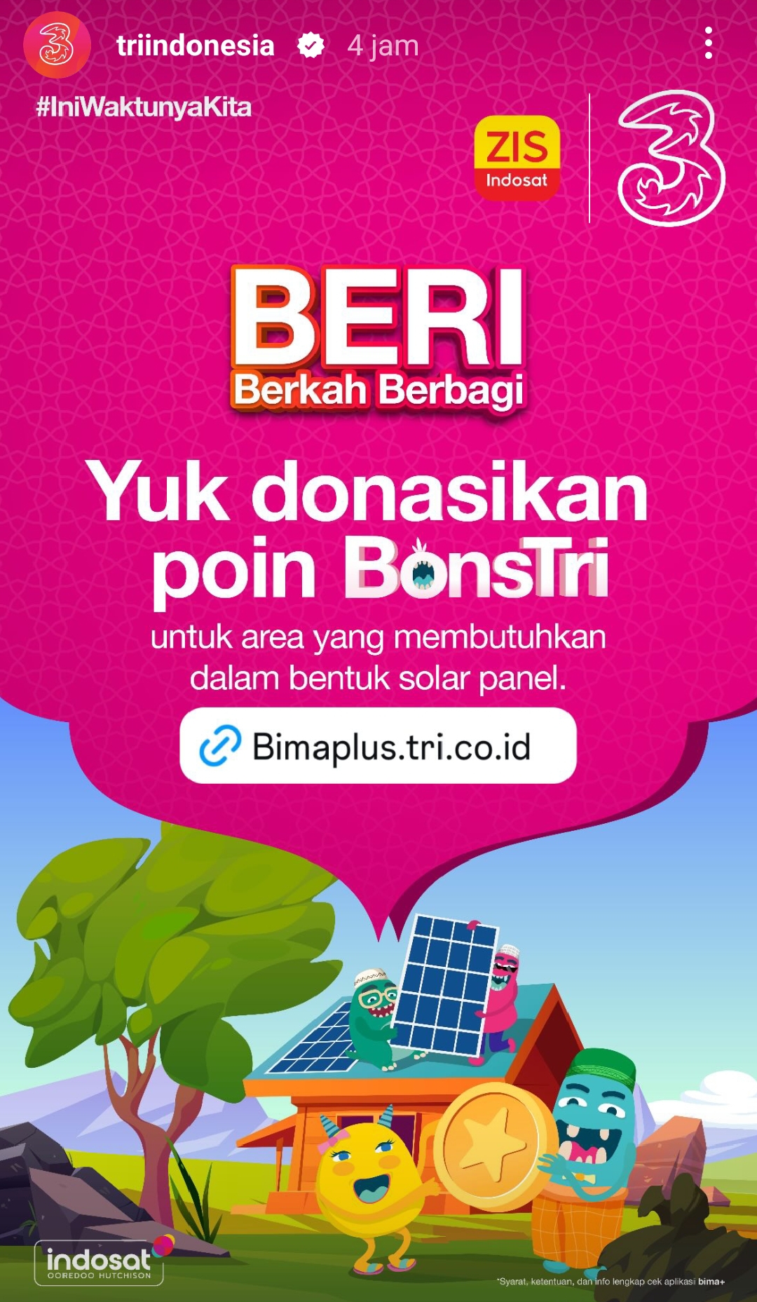 Tri Indonesia Ajak Pelanggan Donasikan Poin BonsTri untuk Solar Panel