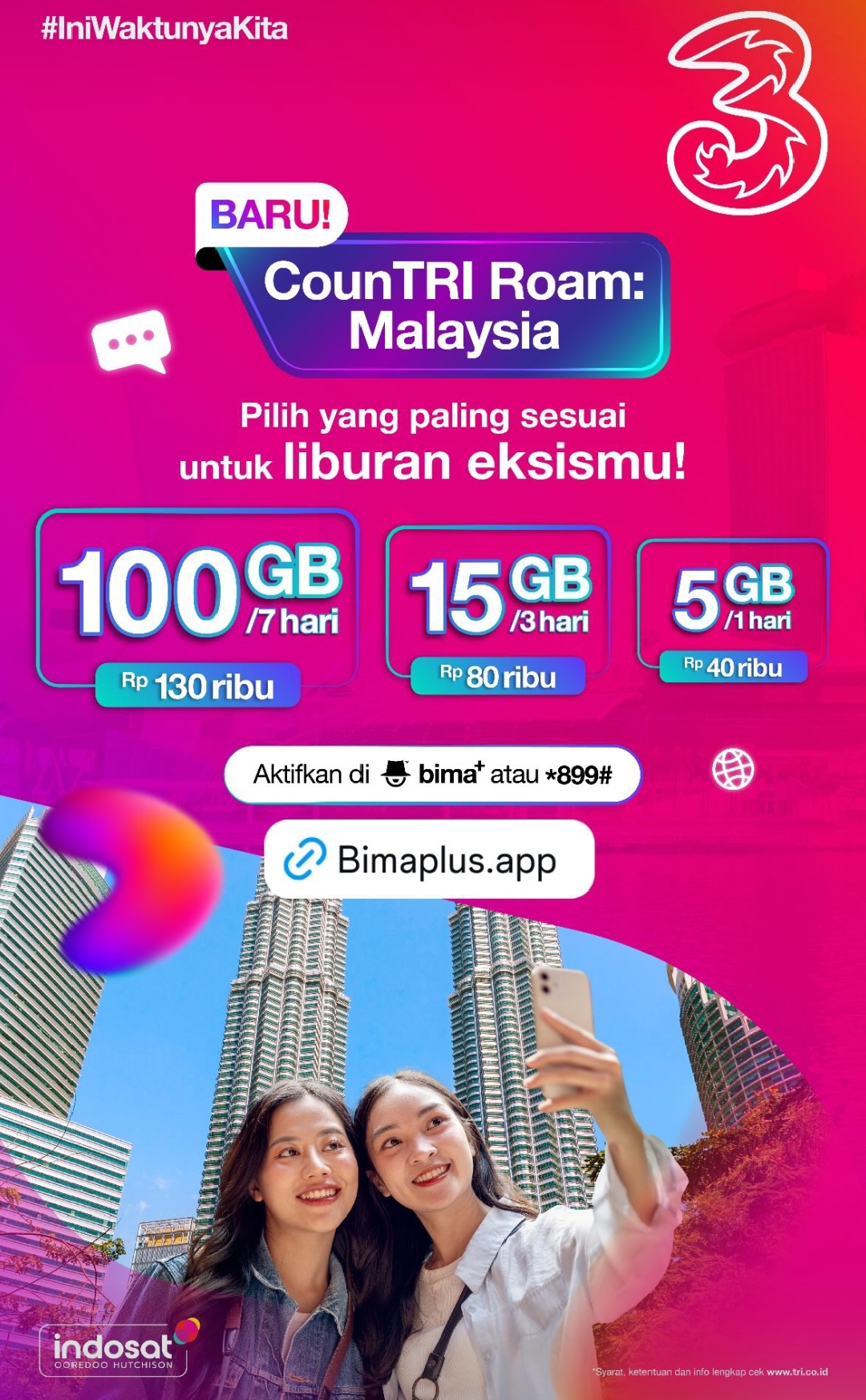 JAKARTA,FILALIN.COM, –Indosat Ooredoo Hutchison melalui brand Tri meluncurkan paket roaming baru bernama “CounTRI Roam: Malaysia”. Paket ini ditujukan untuk pelanggan yang ingin tetap terhubung selama berlibur di Malaysia. Dengan kuota besar dan harga terjangkau, layanan ini menawarkan pilihan ideal bagi para traveler digital. Paket ini bisa diaktifkan melalui aplikasi bima+ atau kode *899#.
