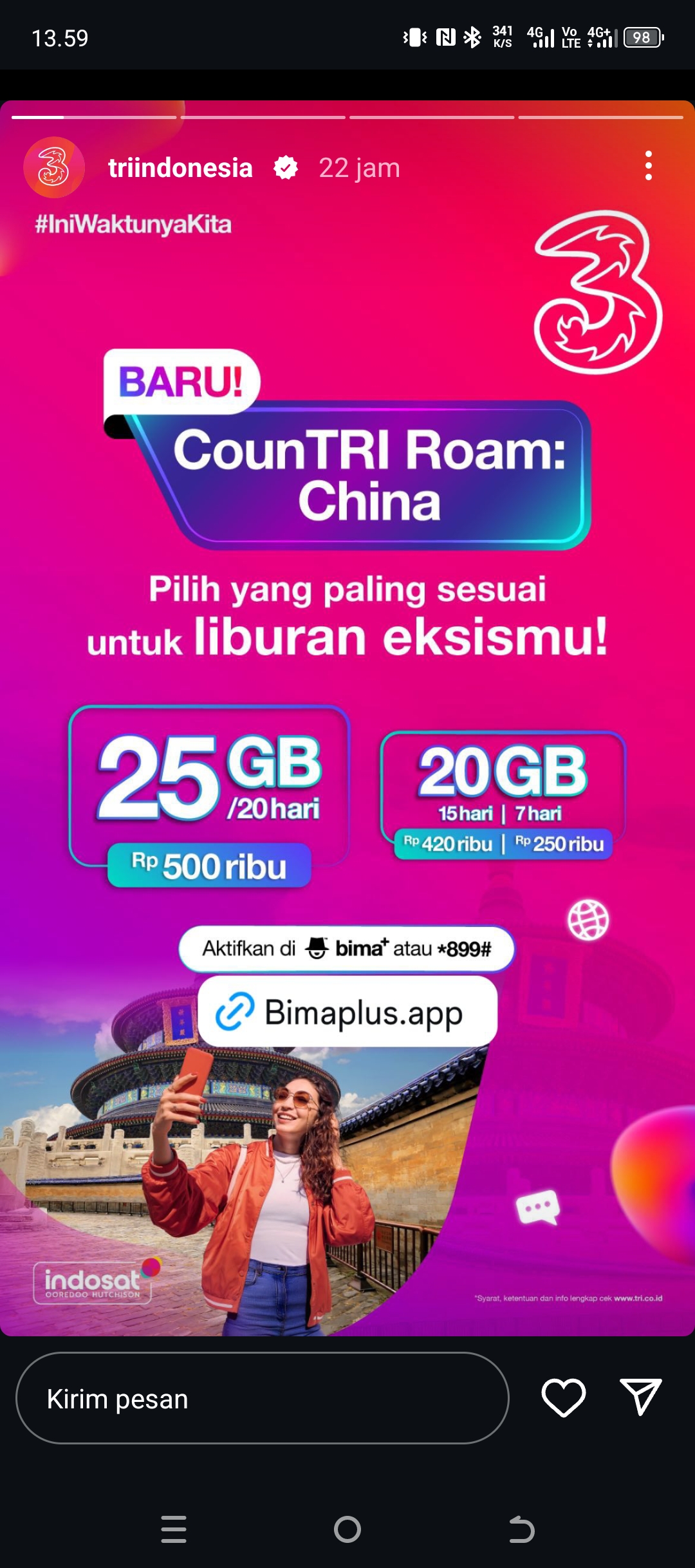 Promo ini tidak hanya menghemat pengeluaran tetapi juga memastikan konektivitas tetap lancar selama di luar negeri. Dengan kuota besar dan harga kompetitif, CountRI Roam menjadi solusi tepat bagi para pelancong. Diharapkan, inisiatif ini dapat memenuhi kebutuhan digital traveler Indonesia di China. Segera manfaatkan promo ini sebelum berangkat agar liburan semakin nyaman dan terhubung dengan keluarga di rumah. (*)