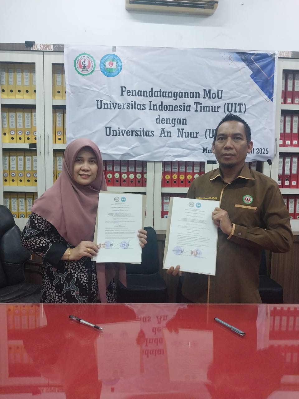 MAKASSAR,FILALIN.COM, Penandatanganan MoU Universitas Indonesia Timur (UIT) Makassar dengan Universitas An Nuur (UNAN) Jawa Tengah di ruangan rapat Rektor UIT, Senin, 14 April 2025.
