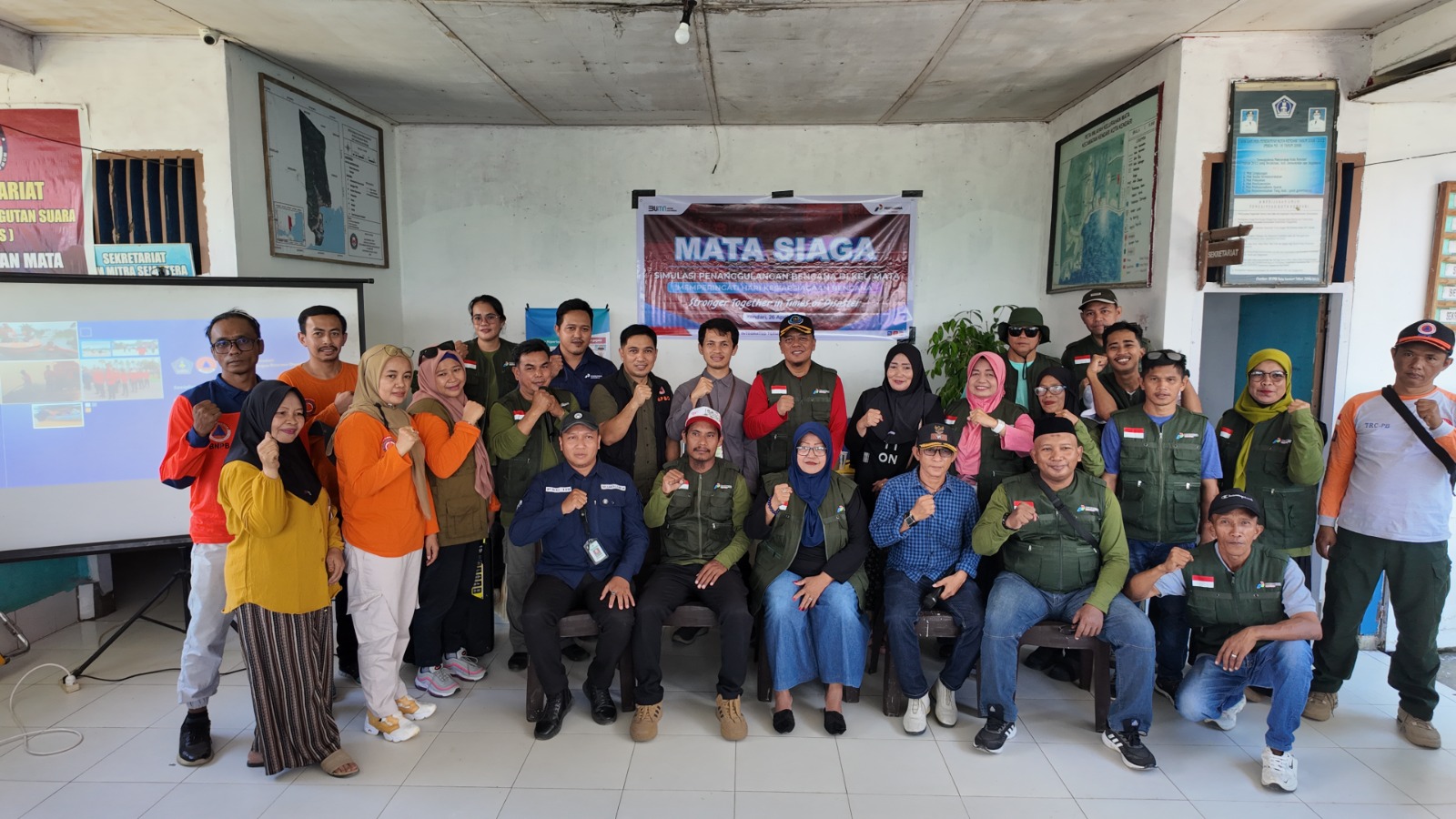 Kegiatan ditutup dengan evaluasi bersama seluruh pemangku kepentingan serta pembagian materi edukatif kepada masyarakat mengenai jalur evakuasi, sistem peringatan dini, dan rencana keluarga saat bencana.