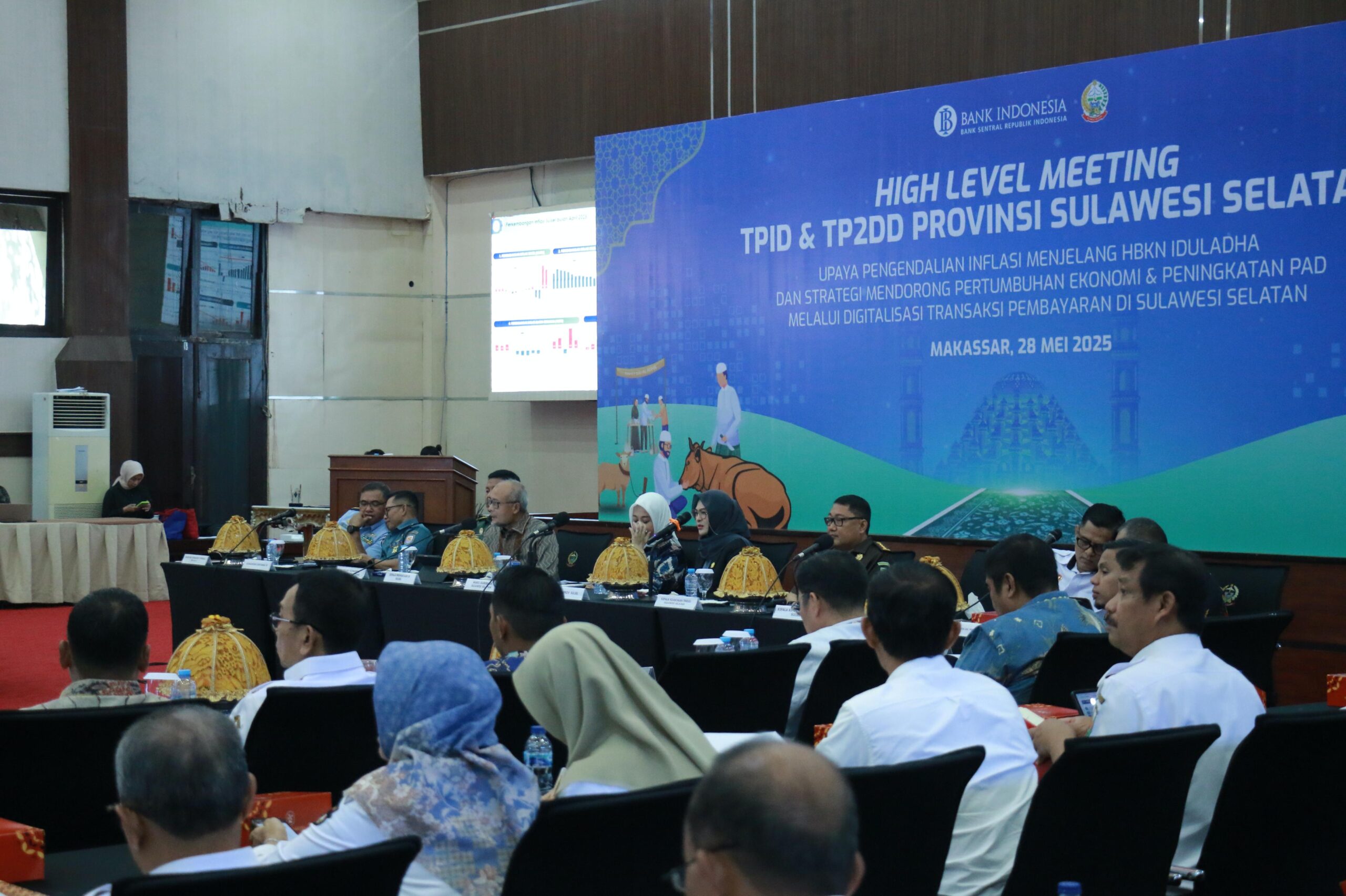MAKASSAR,FILALIN.COM, — Pemerintah Provinsi Sulawesi Selatan menggelar High Level Meeting (HLM) bersama Tim Pengendalian Inflasi Daerah (TPID) dan Tim Percepatan dan Perluasan Digitalisasi Daerah (TP2DD), Rabu (28/5), bertempat di Aula Kantor Gubernur Sulawesi Selatan. Pertemuan strategis ini dipimpin langsung oleh Wakil Gubernur Sulawesi Selatan, Fatmawati Rusdi, dan dihadiri oleh sejumlah pejabat tinggi, termasuk Kepala Perwakilan Bank Indonesia Sulsel, Ketua DPRD Sulsel, Forkopimda, para bupati dan wali kota se-Sulsel, serta pimpinan lembaga vertikal seperti OJK, Bulog, dan BPS.