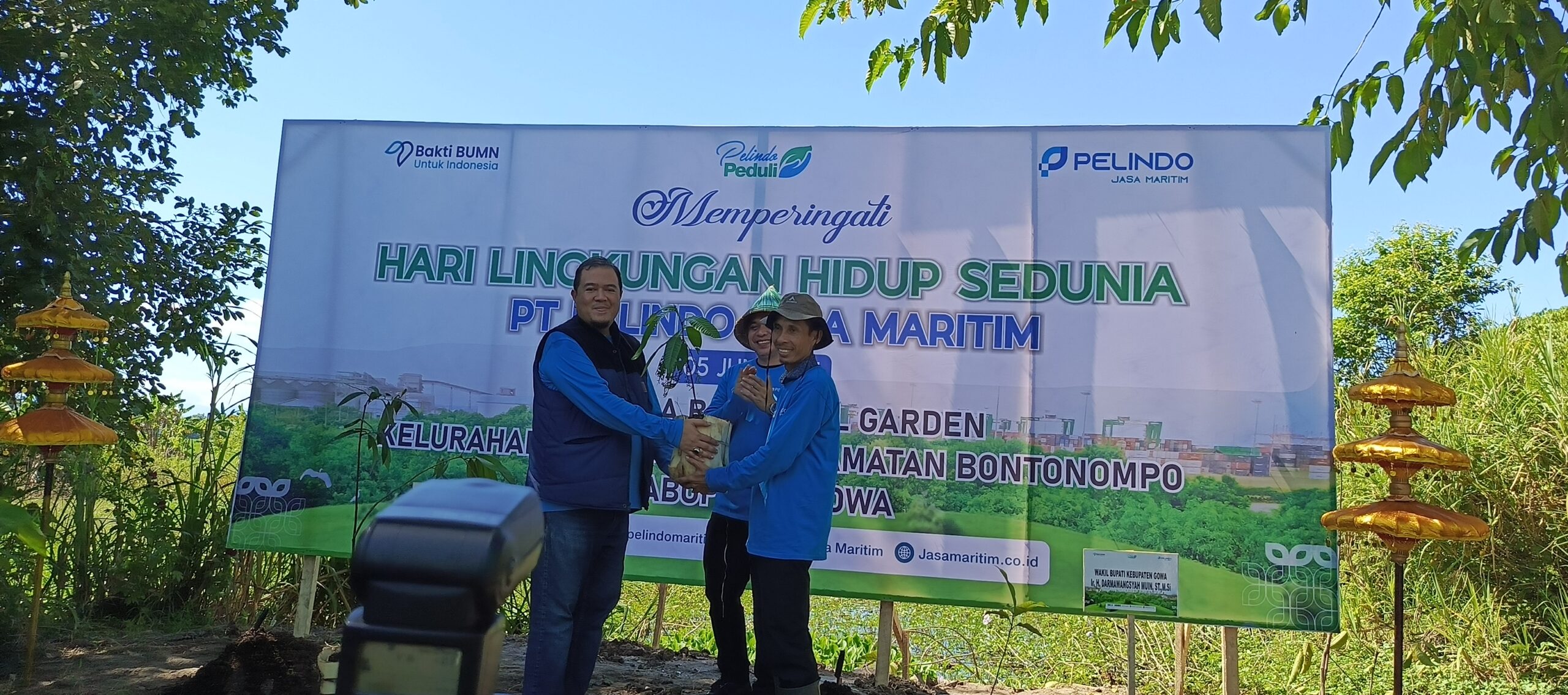 GOWA,FILALIN.COM,  – Dalam rangka memperingati Hari Lingkungan Hidup Sedunia, PT Pelindo Jasa Maritim menggelar aksi nyata pelestarian lingkungan melalui penanaman 5.000 pohon se Indonesia dan 50 pohon  di Kebun Denassa, Kelurahan Bontonompo, Kecamatan Bontonompo, Kabupaten Gowa , Kamis (5/6).