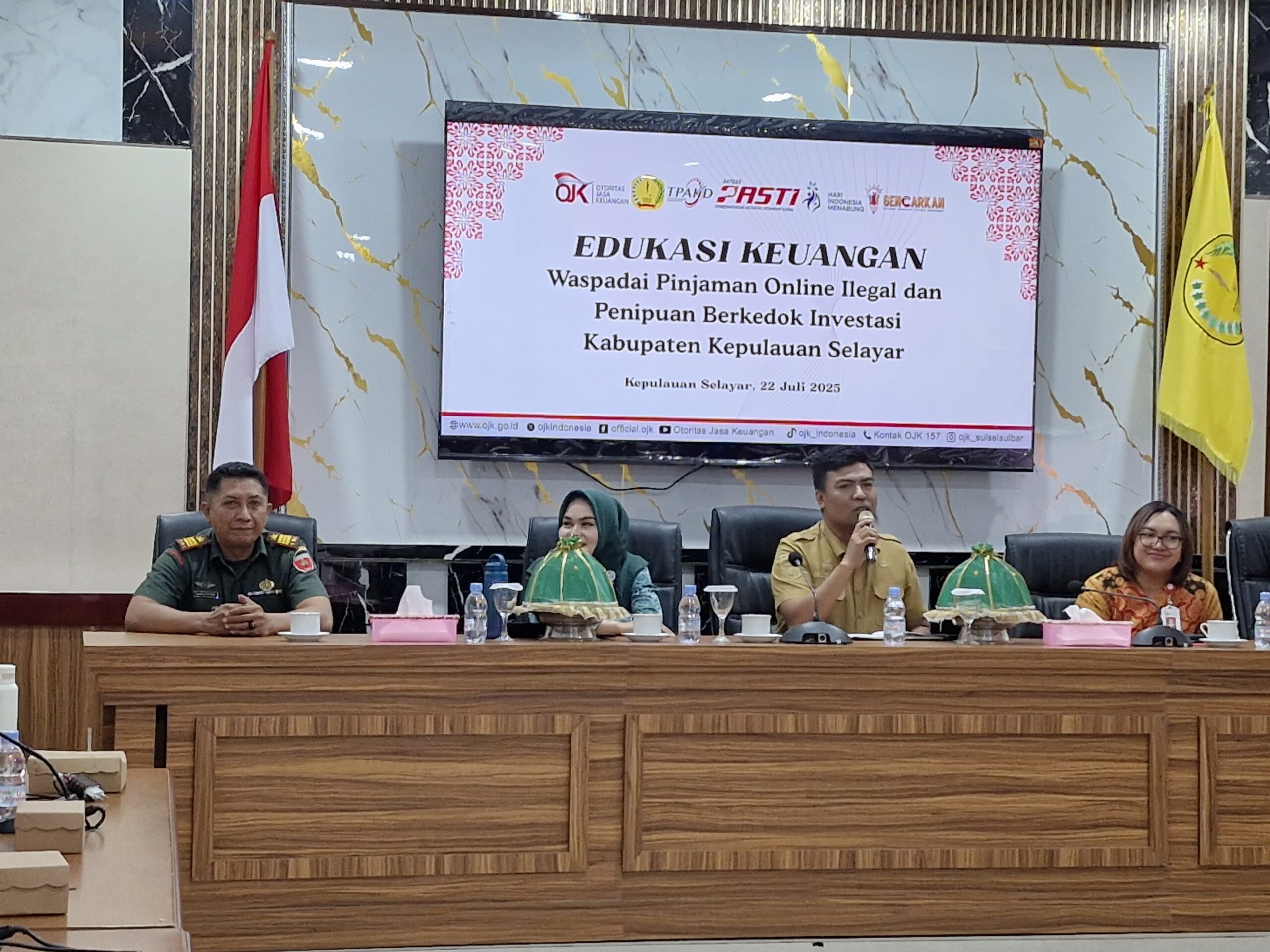 Sementara itu, Kepala OJK Provinsi Sulawesi Selatan dan Sulawesi Barat, Moch. Muchlasin, yang diwakili oleh Amiruddin Muhidu, Kepala Divisi Pengawasan Perilaku PUJK, Edukasi dan Pelindungan Konsumen, memaparkan perkembangan sektor jasa keuangan di Selayar serta arah strategis TPAKD 2025. Ia menekankan pentingnya literasi keuangan sebagai fondasi peningkatan Indeks Pembangunan Manusia (IPM).