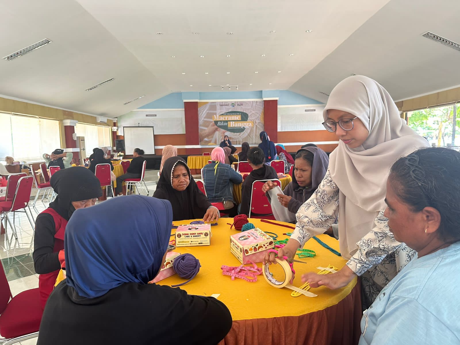 Kegiatan Tabung Karya Vol.2 sendiri mengusung tema “Macrame Bikin Bangga” dan diselenggarakan di Madrid Hall Akkarena pada Selasa, 21 Oktober 2025. Berlangsung selama lima jam, pelatihan ini menghadirkan mentor dari komunitas TanganDia yang dipandu oleh Diayani Sukardi.