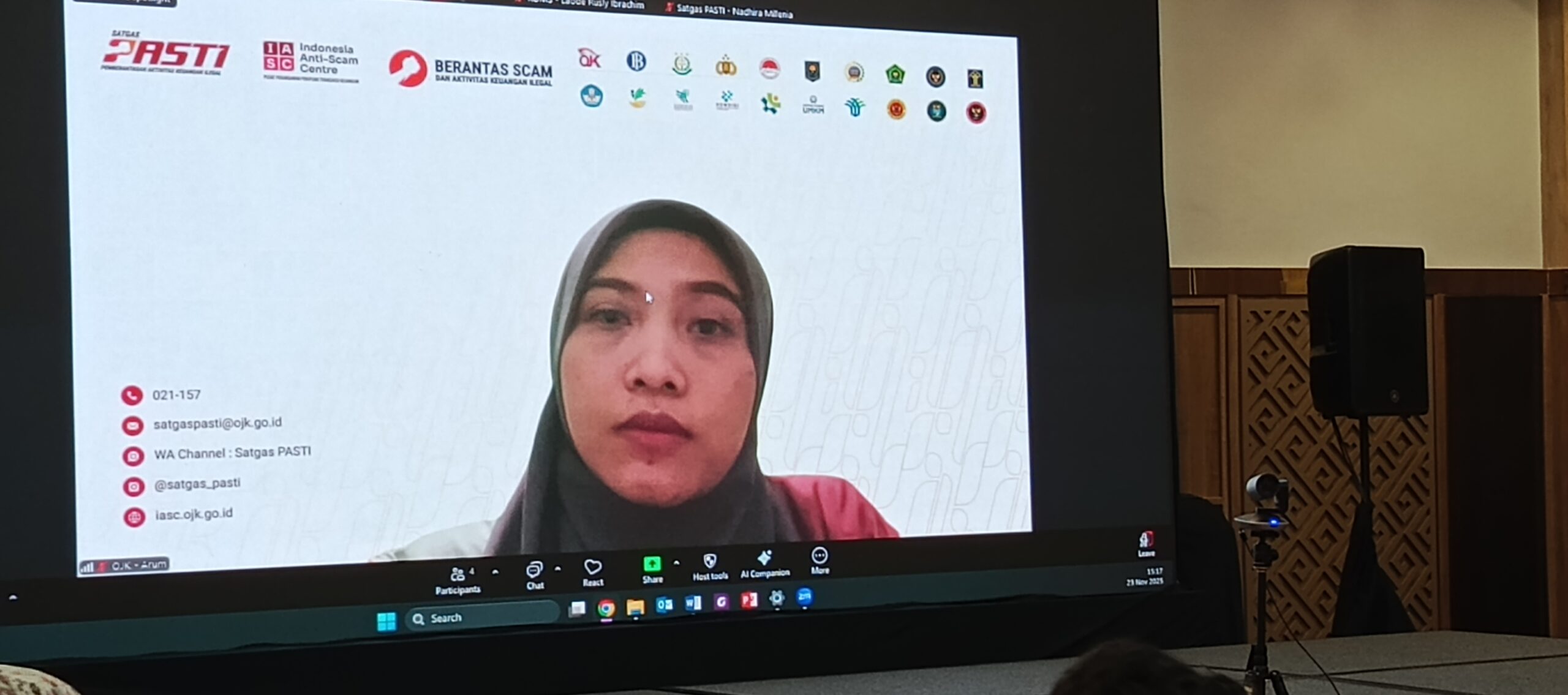 Arum menjelaskan bahwa Satgas PASTI kini diperkuat melalui POJK Nomor 14 Tahun 2024 yang memberikan landasan hukum koordinasi lintas lembaga dalam penanganan kegiatan keuangan ilegal. Terdapat 13 kementerian, 2 otoritas, dan 6 lembaga yang tergabung, termasuk Kepolisian RI, Kejaksaan, BI, BSSN, hingga PPATK.