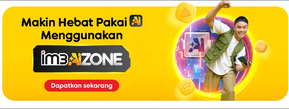 Dalam materi kampanye tersebut, IM3 mengajak masyarakat untuk “Makin Hebat Pakai Menggunakan IM3 AI Zone”, menandakan fokus layanan baru ini untuk mempermudah aktivitas harian berbasis digital, mulai dari hiburan, komunikasi, hingga akses informasi. Tombol ajakan bertuliskan “Dapatkan sekarang” menunjukkan bahwa layanan ini sudah mulai tersedia untuk publik.
