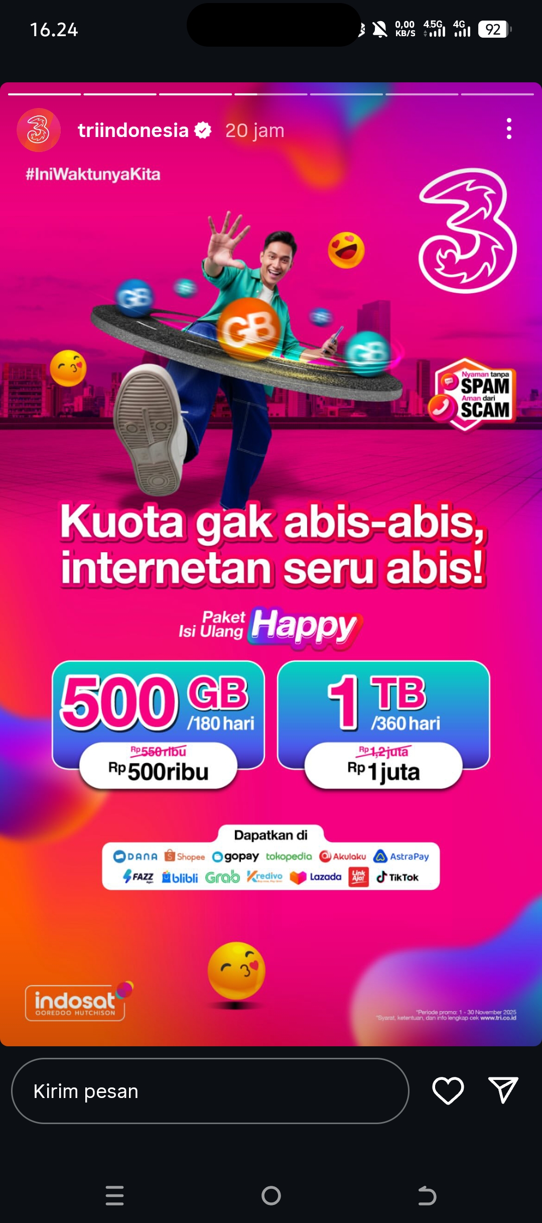 Tri Indonesia Hadirkan Promo “Happy” dengan Kuota Jumbo hingga 1 TB, Harga Lebih Hemat