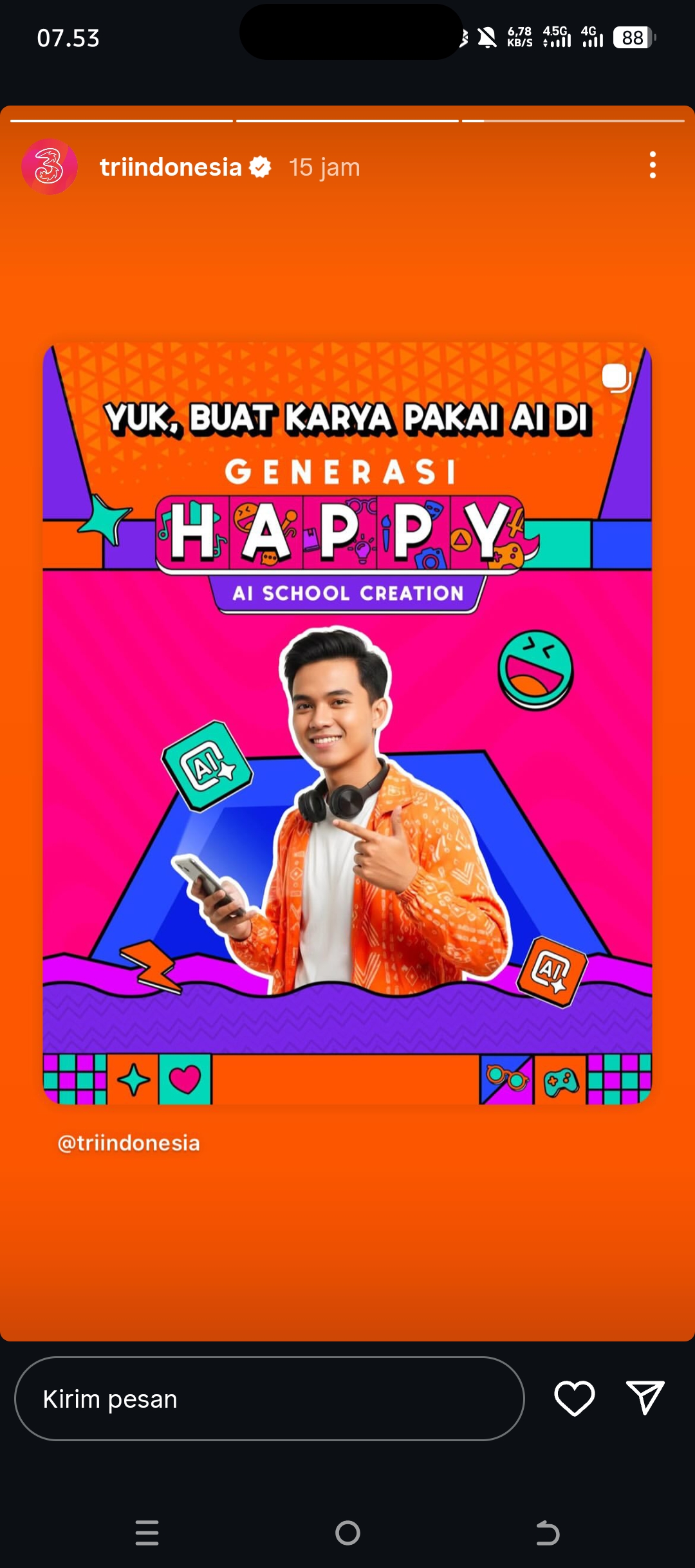 Dalam unggahan resmi yang dibagikan melalui media sosial, Tri Indonesia menampilkan visual ceria dengan warna-warna cerah khas anak muda. Seorang pelajar tampak memegang smartphone, melambangkan semangat baru bahwa siapa pun bisa belajar dan berkreasi menggunakan AI.