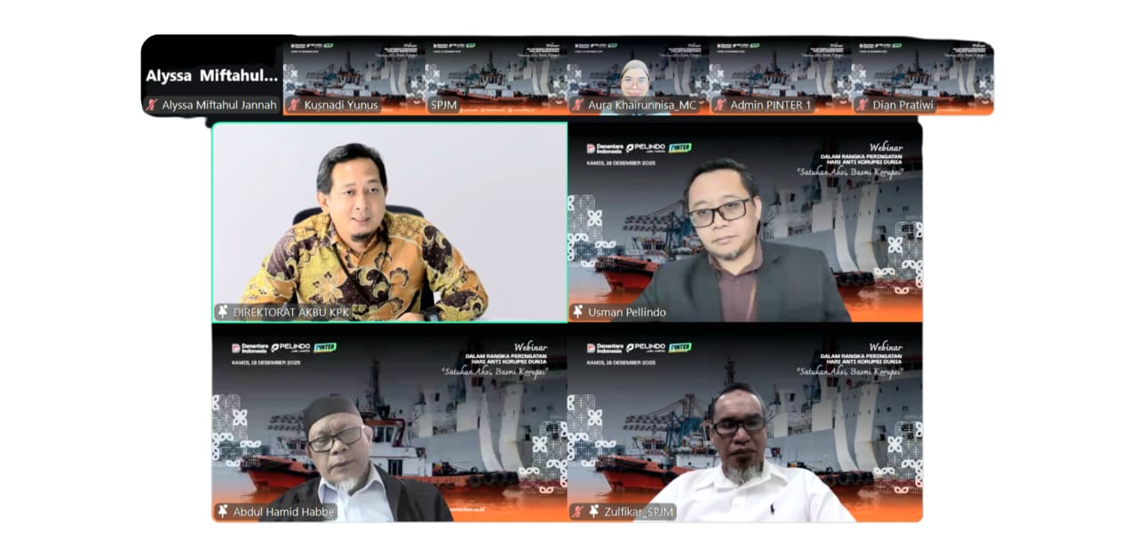 MAKASSAR,FILALIN.COM, — PT Pelindo Jasa Maritim (SPJM), subholding PT Pelabuhan Indonesia (Persero) yang bergerak di bidang Marine, Equipment (peralatan), Port Services (Layanan Pelabuhan), Docking dan Shipyard mengadakan Webinar Ilmiah untuk memperingati Hari Antikorupsi Sedunia (HAKORDIA).