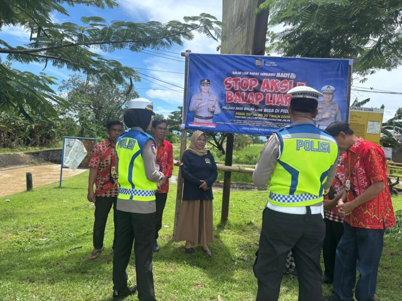 MAKASSAR,FILALIN.COM, –Personel Unit Kamsel (Keamanan dan Keselamatan) Satlantas Polres Gowa menggelar sosialisasi pencegahan aksi balap liar bersama Kepala Desa Pannyangkalang, perangkat desa, tokoh masyarakat, Ketua BPD, serta Bhabinkamtibmas, bertempat di Doja Jalan Poros Limbung–Bontonompo, Kecamatan Bajeng, Kabupaten Gowa, Kamis (19/2/2026).