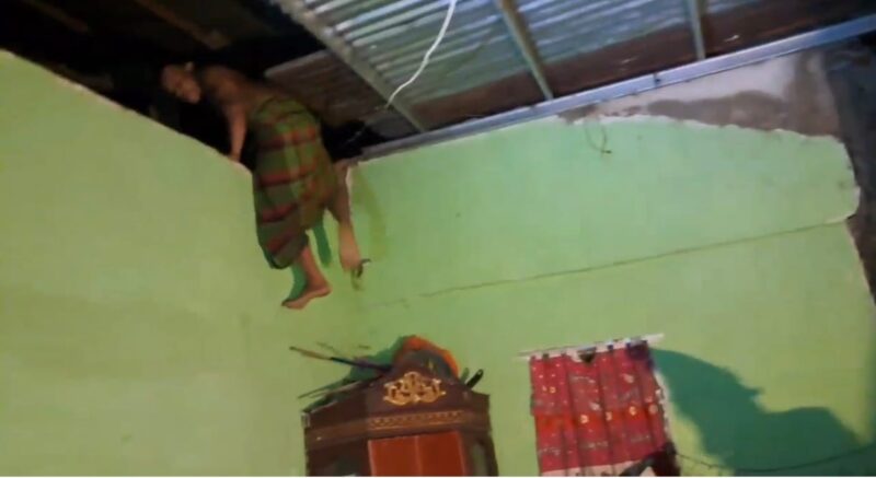 Saat petugas tiba dan melakukan penggeledahan, pelaku diketahui naik ke bagian atas rumah dan bersembunyi di atas plafon untuk menghindari penangkapan.