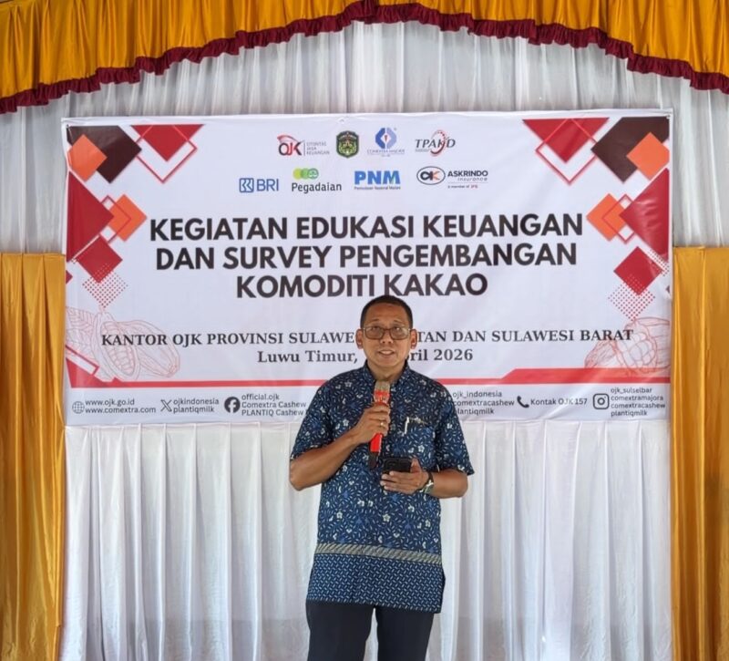 WOTU,FILALIN.COM,.– Ealam rangka mendorong Pengemmbangan Ekonomi Daerah (PED) khususnya komoditas unggulan daerah, Kantor Otoritas Jasa Keuangan (OJK) Provinsi Sulawesi Selatan dan Sulawesi Barat bersama Industri Jasa Keuangan (IJK) dan perusahaan offtaker komoditi kakao PT Comextra Majora melaksanakan kegiatan Edukasi Keuangan dan Survei Kebutuhan Pengembangan Komoditas Kakao di Kecamatan Wotu, Kabupaten Luwu Timur.