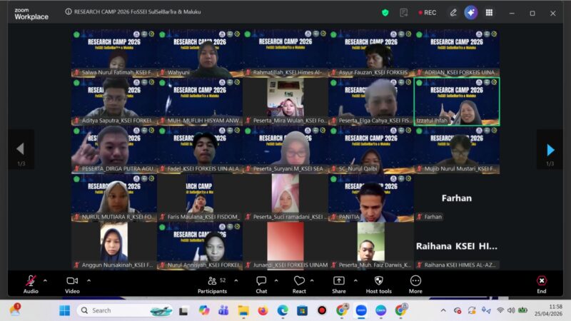 MAKASSAR,FILALIN.COM, –Semangat intelektual dan kolaborasi kembali digaungkan melalui pelaksanaan Research Camp (RC) 2026 yang diselenggarakan oleh FoSSEI Regional Sulawesi Selatan, Barat, Tenggara, dan Maluku. Mengusung tema “Optimalisasi Peran Peneliti Muda Melalui Pelatihan Karya Tulis Ilmiah demi Mewujudkan Publikasi yang Berkualitas”, kegiatan ini berlangsung selama dua hari, pada Sabtu–Ahad, 25–26 April 2026, secara daring melalui Zoom Meeting mulai pukul 08.00 WITA hingga selesai.