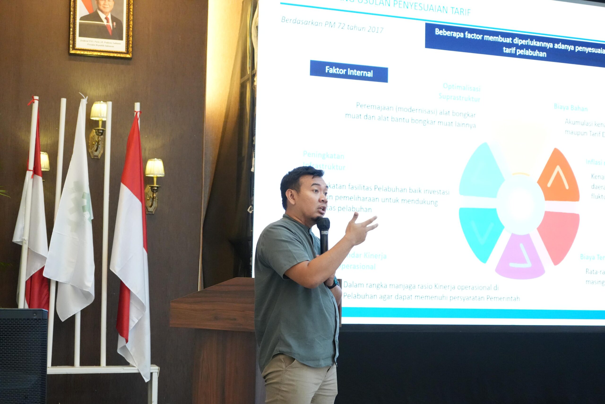 Kegiatan ini juga menghadirkan pemateri yakni Senior Officer Manajemen Kinerja Neny Ratih Windiati dan Senior Officer Manajemen Kinerja Desyana Irmasari dari Group Head Strategi Korporasi dan Inovasi Pelindo dengan materi yang dibawakan “Penerapan P-KPI dan P-RKM 2.0”. Serta Manager Evaluasi & Pengelolaan Tarif Erfin Wijayanto dari Group Head Manajemen Pelanggan Pelindo yang membawakan materi “Perhitungan Tarif Jasa Barang dan Jasa Terkait”.