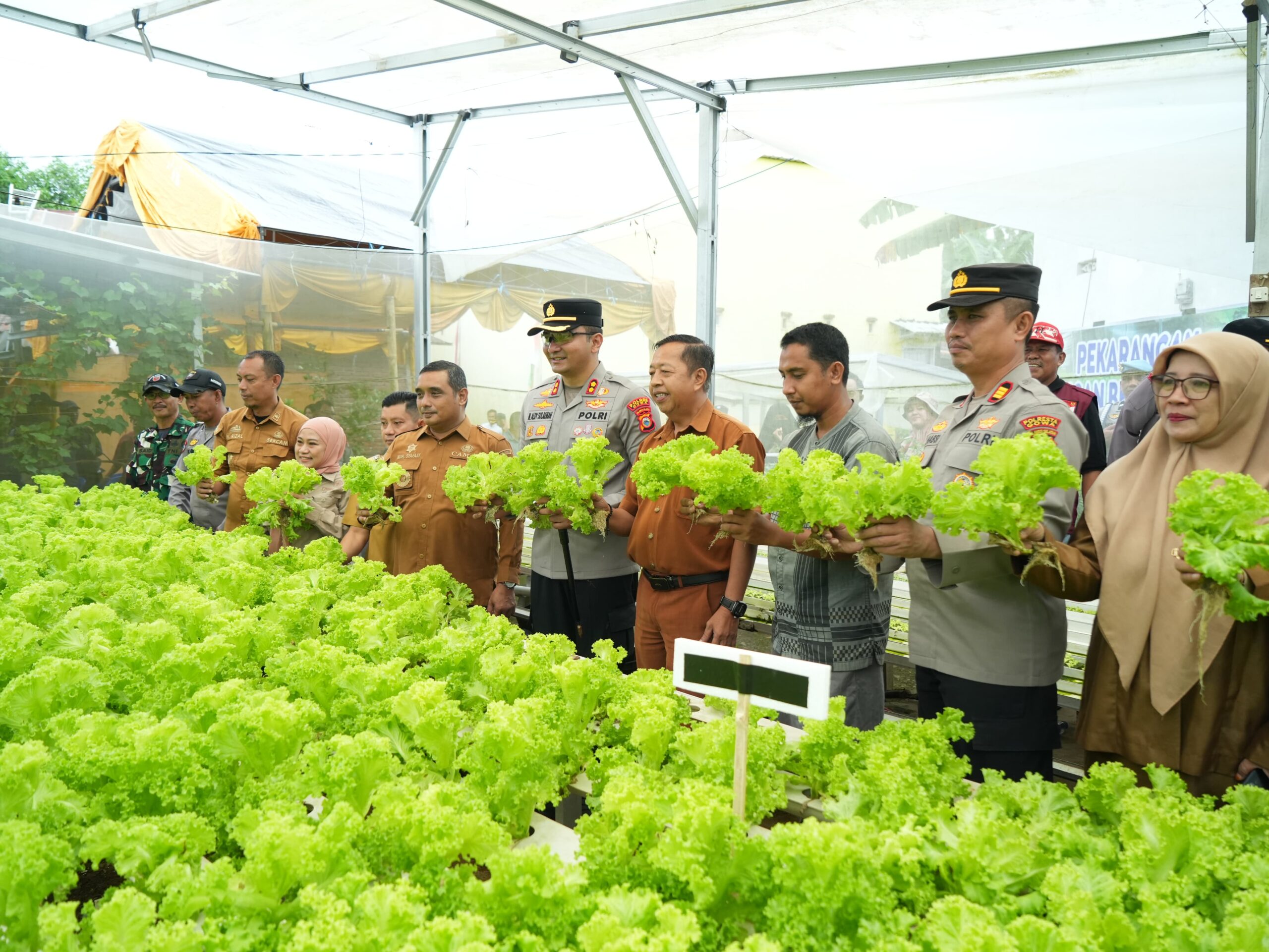 Kegiatan launching ditandai dengan panen perdana berbagai jenis tanaman pangan dan sayuran oleh Kapolres Gowa bersama unsur muspika dan undangan yang hadir.